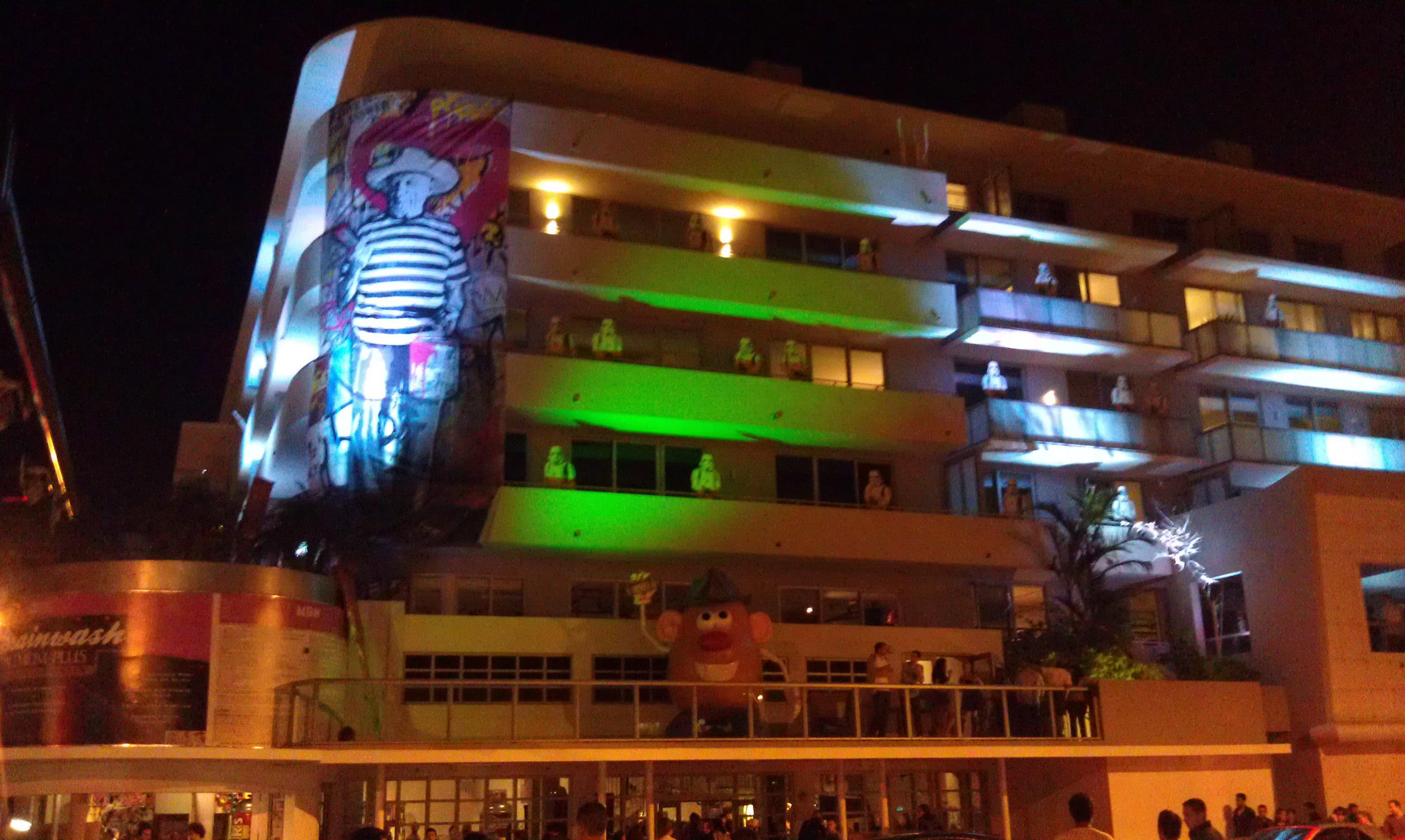 Outside The Boulan Hotel…Yes, those are Storm Troopers and a giant Mr. Potato Head.