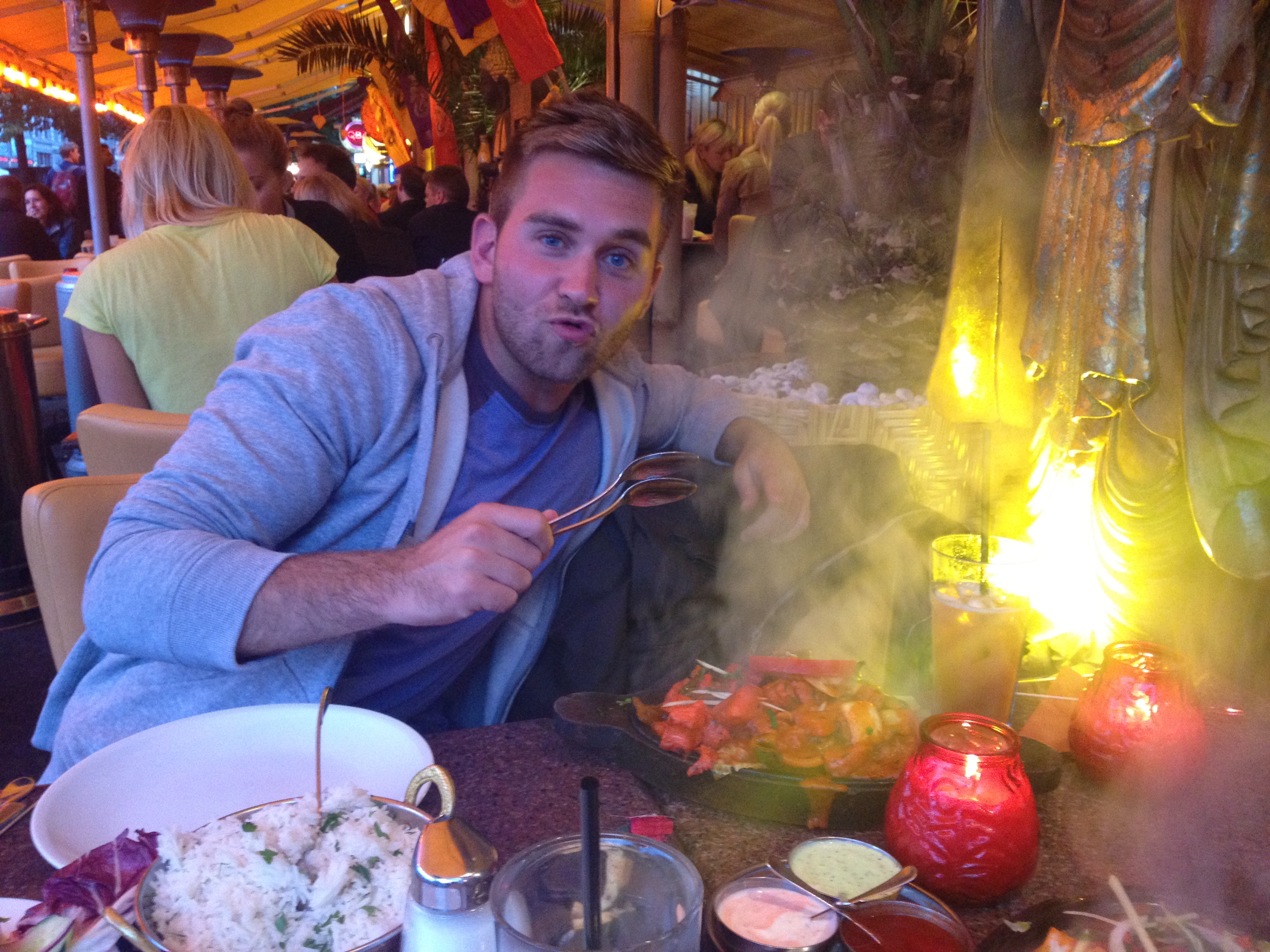 Eating at some Indian restaurant across the street from Kunsthaus Tacheles