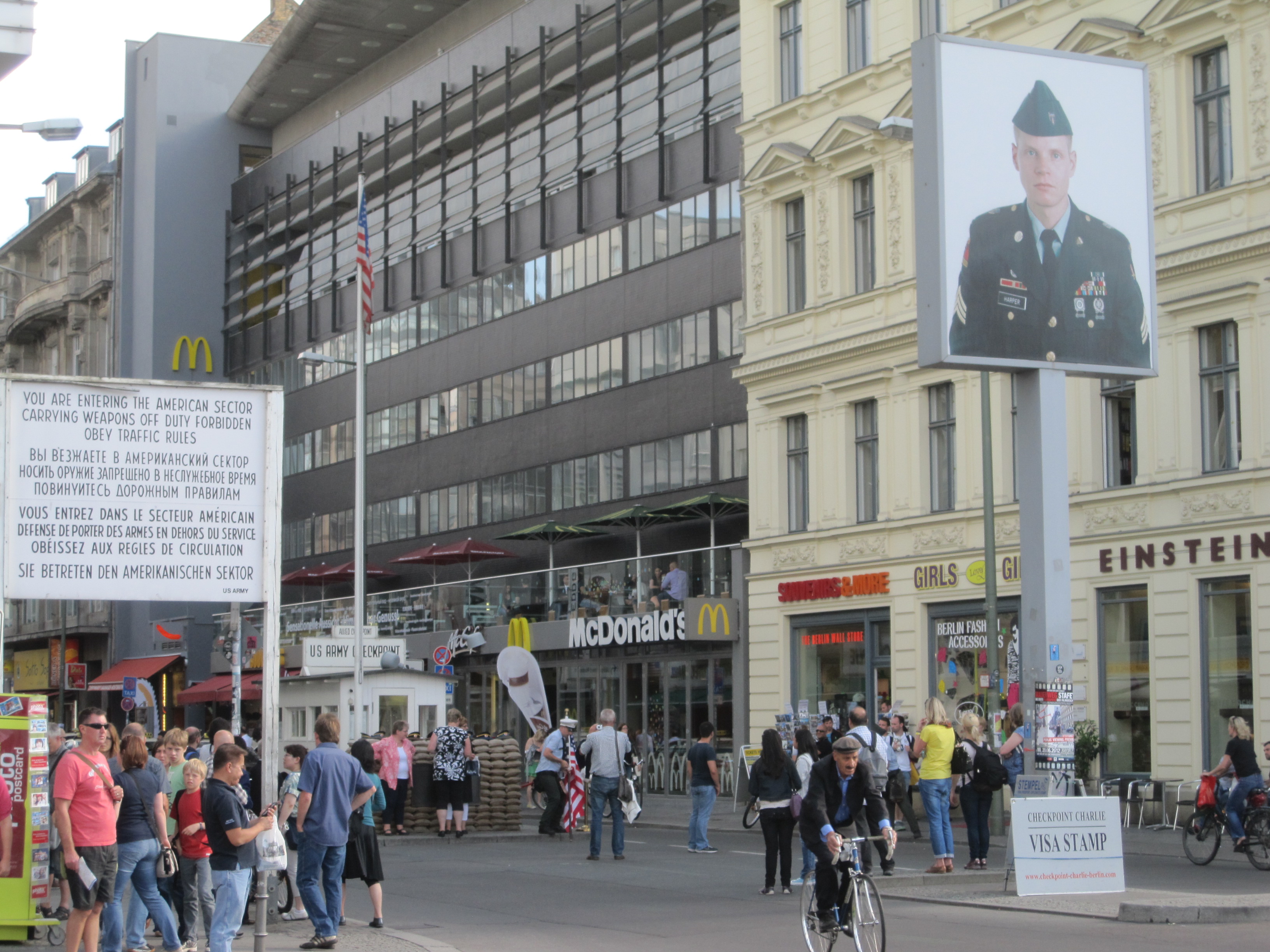 The next day, I said adieu to Felicia and headed into the city center to go on walking tour with fellow blogger, Becki from BackpackerBecki.com. She found it and did a great job. We had a very knowledgeable Scot leading us and a few others on a pretty all-encompassing 4 hour tour. We started at the Hackescher Markt, meandered our way down the historic road, Unter den Linden (literally means under the Linden ((which is a type of tree the road used to be lined with))), past the iconic Brandenburg Gate, through the Holocaust Memorial, along a piece of the preserved Berlin Wall, said whatup at Checkpoint Charlie and finally ended at the Gendarmenmarkt which is one of the best preserved squares in the city.
