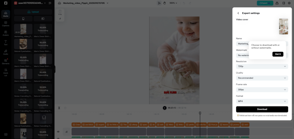 Pippit upholds this using auto-reframe technology. It automatically adjusts aspect ratios to a vertical layout, a square layout, or a horizontal layout. You post it on Instagram, Tik Tok, or Youtube, and your snippet is just the right fit. Pippit also assists you in the editing of the video length to platform standards. This is to guarantee enhanced visibility and engagement.