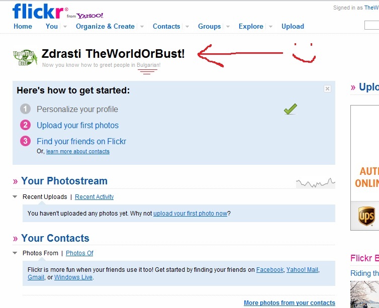 When making my flickr account this morning, I was welcomed with something special. Call it fate, a divine algorithm, or just sheer coincidence, but I like flickr already, Zdrasti to you too!