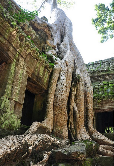 The Ta Prohm temple has been impressively accessorised by nature, with vast tree roots twisting around and enveloping parts of the stone. It was also used as a filming location in Tomb Raider, so you can also run around pretending to be Angelina Jolie (optional).