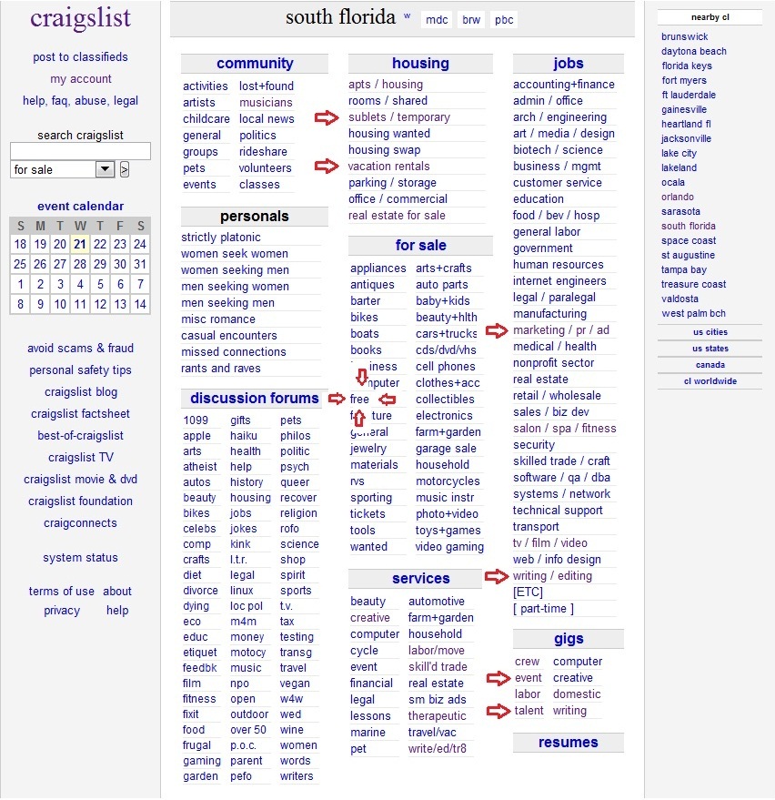 If you’re not familiar with the website (a.k.a you don’t live in the US), it is basically an online classifieds board set up for every major city with everything from apts for sale, jobs, groups to meet up with like-minded people, and until just recently, NSA (no strings attached) sexual encounters…Probably better they got rid of that feature.