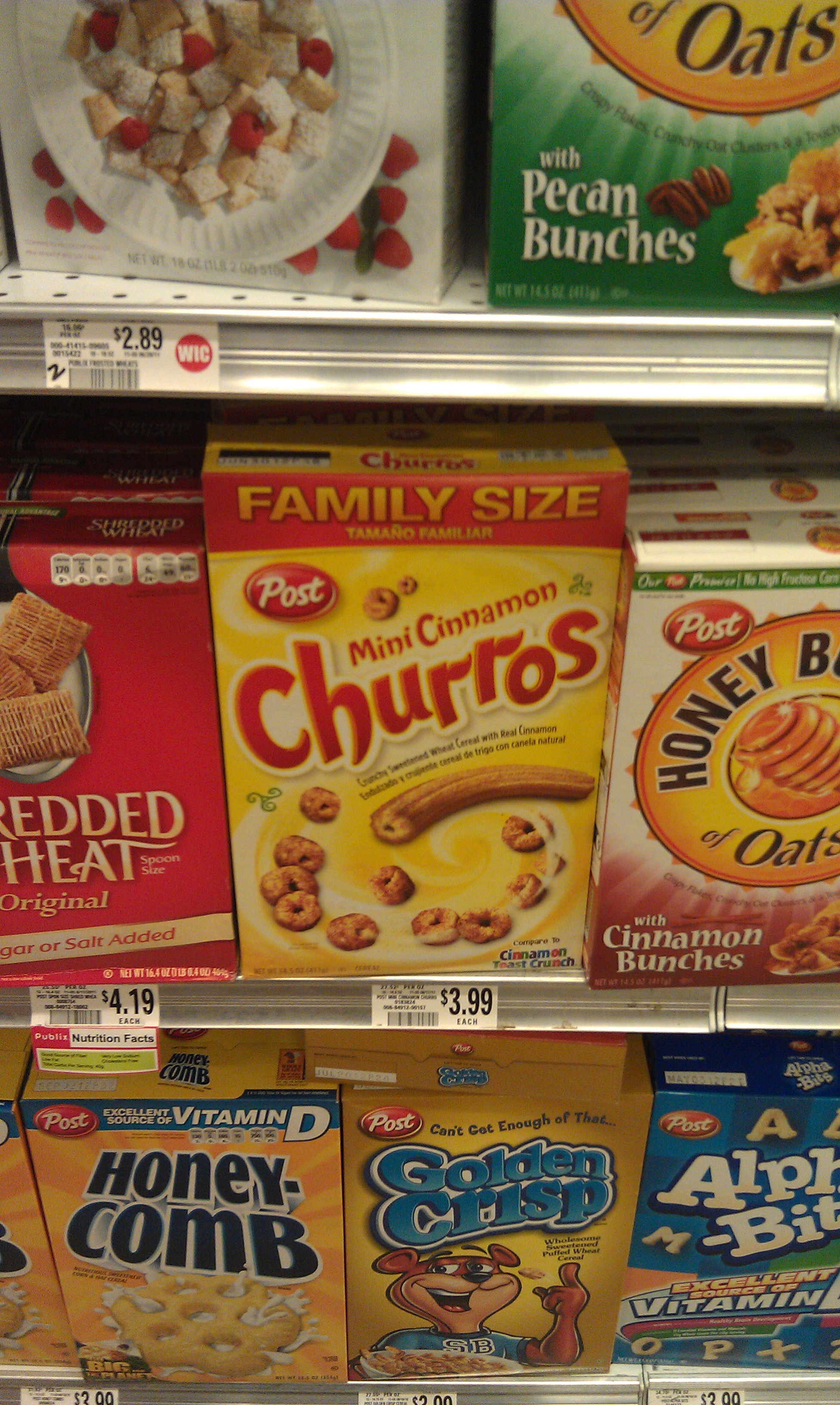 When growing up and as a young American male, all I wanted to eat were cookies for breakfast (Cookie Crisp cereal satiated that one), so I guess it just makes sense that a young latin boy or girl would want churros for breakfast… Saw this new cereal at the super market this morning and found it comical/genious marketing. Gotta give em’ what they want!