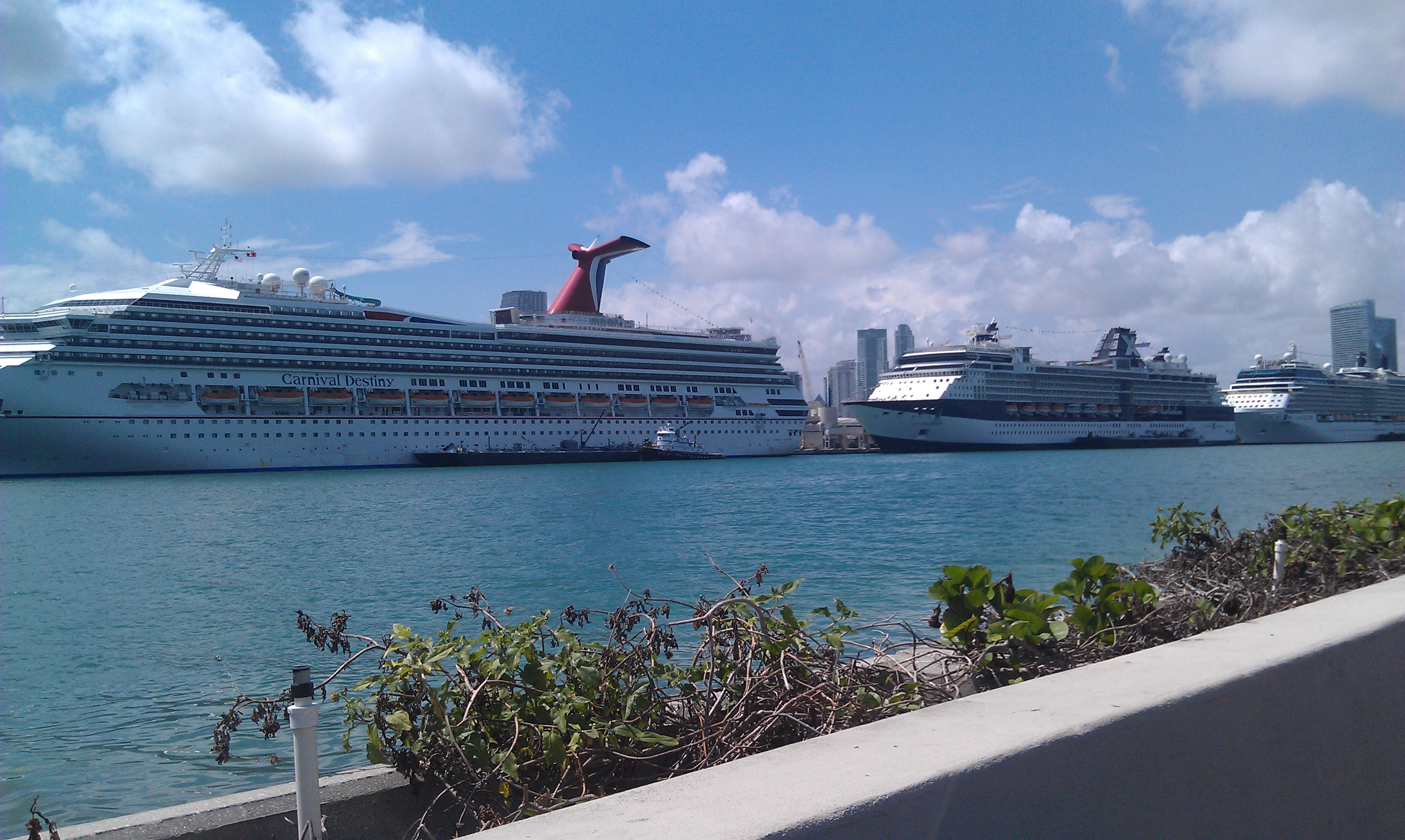 If you drive by on Macarthur Causeway in between South Beach and the Port of Miami, you can see the people on the ships waving to the people driving by. Many of us locals return the wave and send them off on their vacations with a smile.
