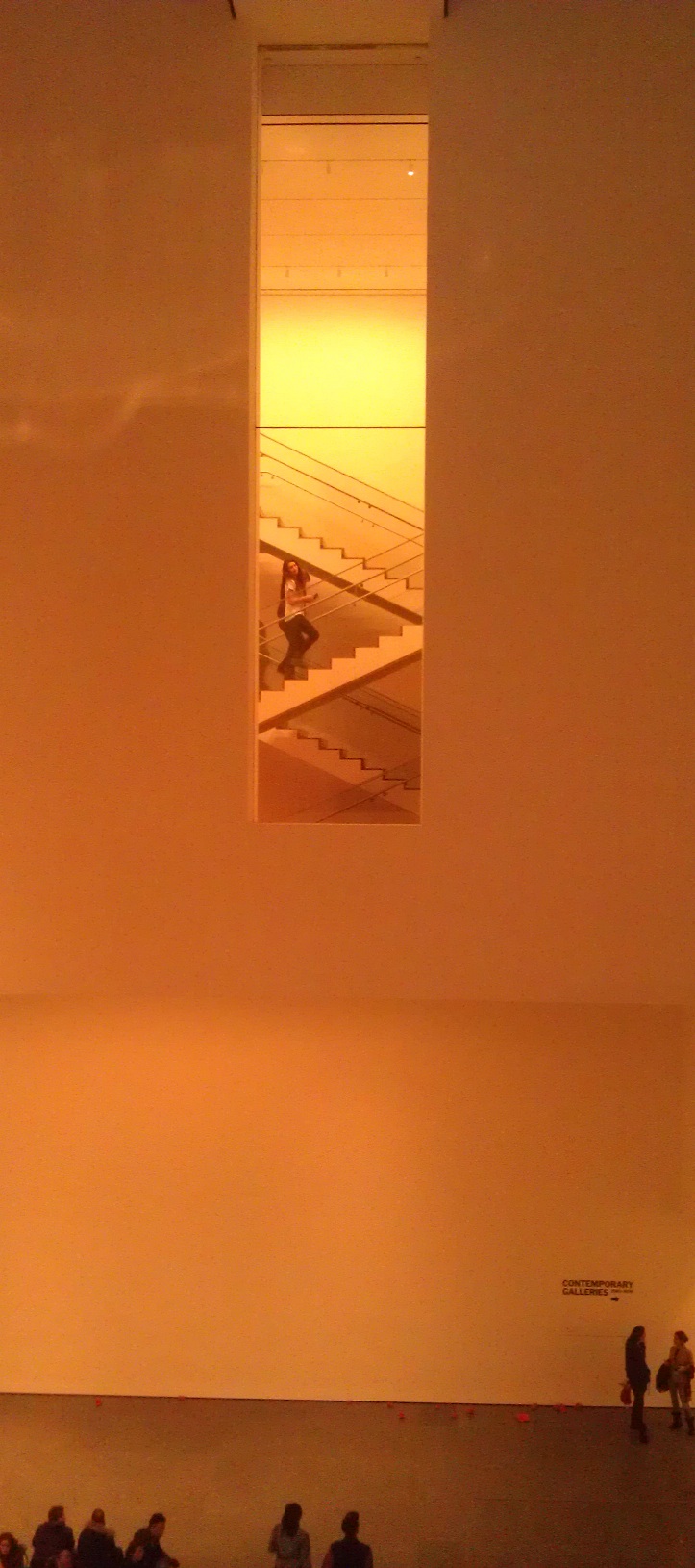 I don’t know what it was about these stairs at the MoMa in NYC, but I stayed there and watched them for twenty minutes. I almost felt like a voyeur as I watched man, woman and child walk up and down, up and down. From where I was looking across the atrium, the stair climbers almost seemed to be dynamic artwork themselves. I guess it was so fascinating to me because you don’t often get to see a cross section of a stairwell, I guess. That or I was just in some sort of introspective hipster trance after being surrounded by stoic faced students from NYU and FIT.