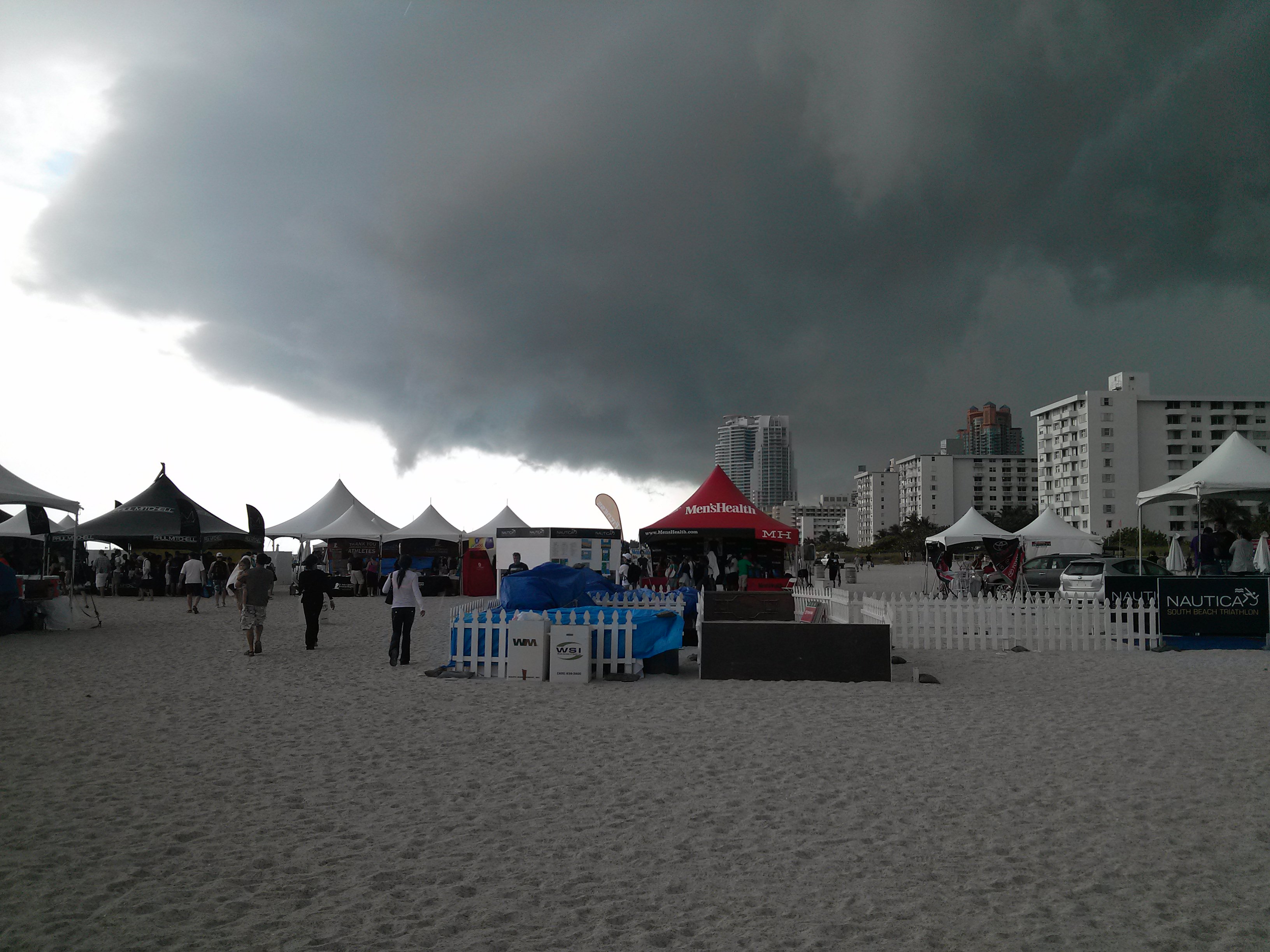 But Miami has a tendency to change its mind frequently on all fronts, including the weather. Within minutes of a cloudless sky came the Apocalypse. We ended up getting stuck under our little tent for an hour until the storm passed, but as you can see, it was pretty impressive.