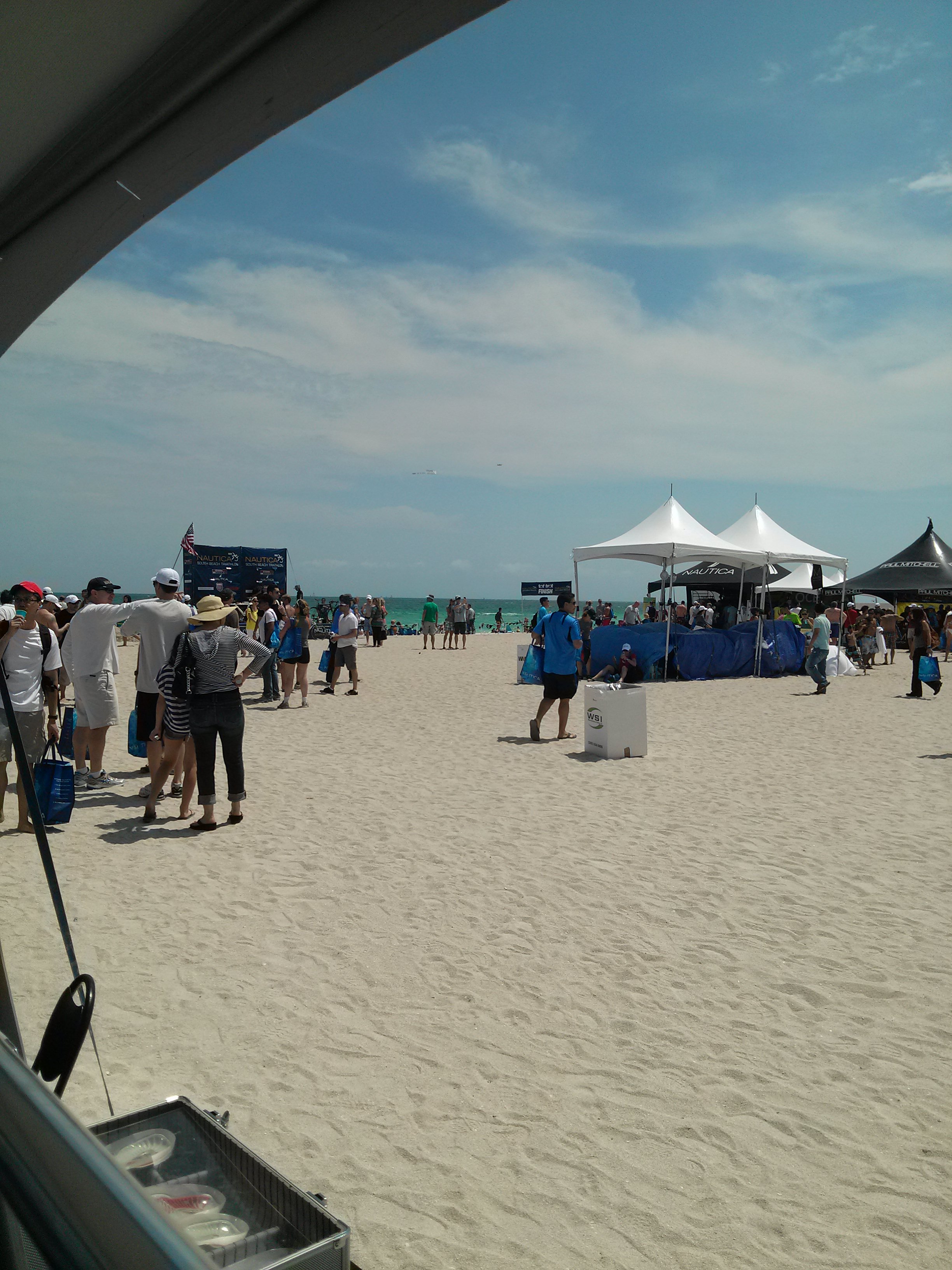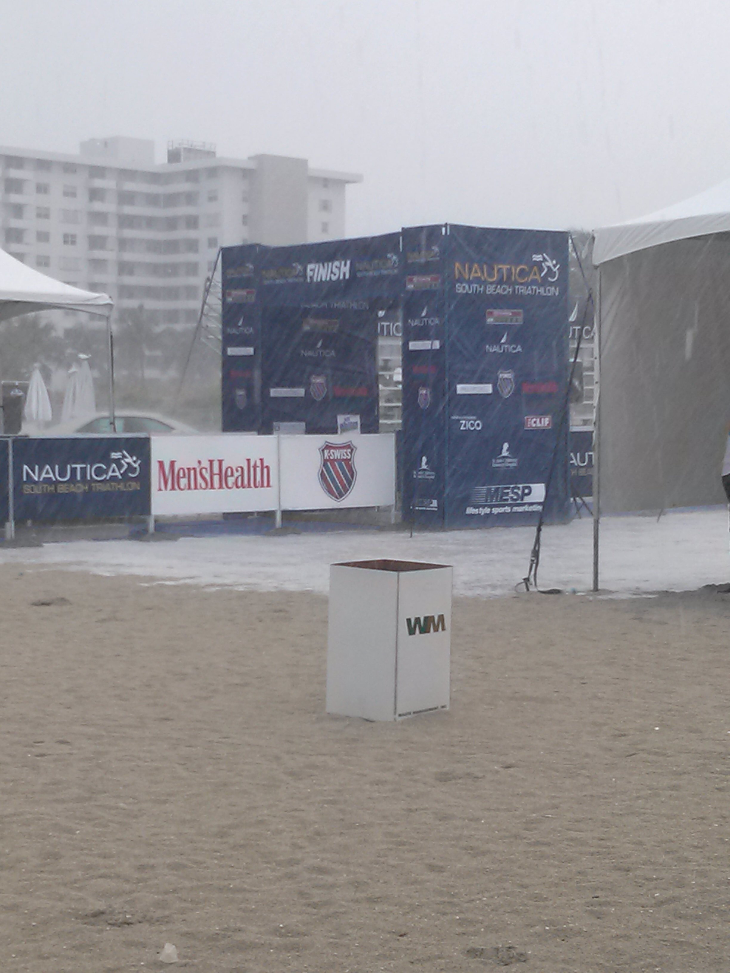 I was working at the Nautica South Beach Triathlon for a company called Aline that sells performance sneaker insoles for athletes. We were set up literally on the beach and business was doing well.