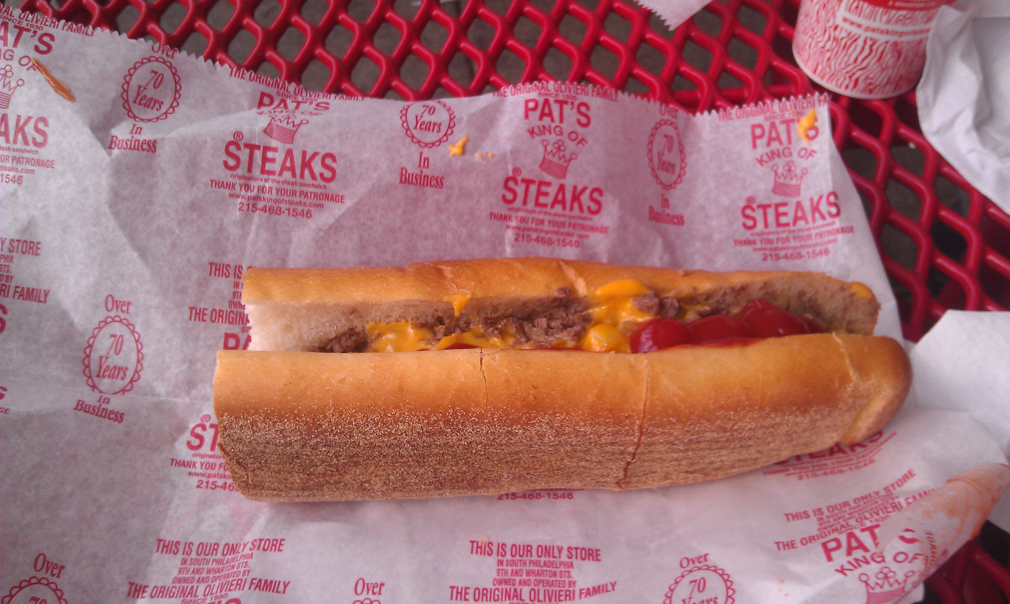 Whenever someone finds out that I’m from Philadelphia, I either get, “I’ve never been there, but I’ve been to Boston, New York and Washington D.C.” (screw you), or, “Phillllyyyy, Pat’s or Geno’s?” (screw you again). I won’t get into the fact that Philly is one of the biggest and nicest cities in the country and just 3 hours north of D.C. and only two hours south of NYC and is still bypassed, but my mission is to enlighten all of you that MIGHT visit and want to enjoy one of Philly’s best inventions besides myself, I’m talking about heaven between bread, God’s second son, The life and love of Philadelphia – The Cheese Steak.